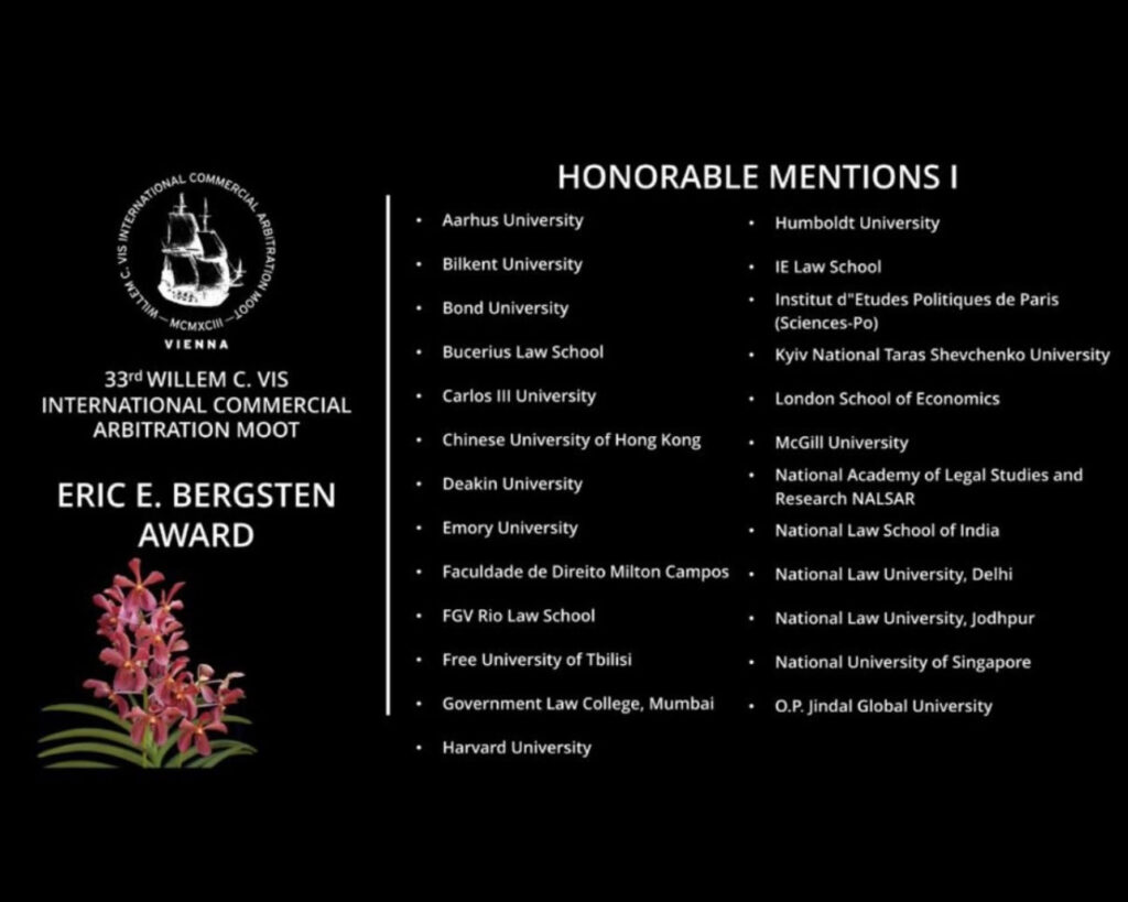 The Faculty of Law Vis Moot team has achieved remarkable success at the 33rd Willem C. Vis International Commercial Arbitration Moot. The Vis Moot is one of the world’s most prestigious international arbitration competitions, bringing together law students from across the globe to compete in simulated commercial dispute proceedings. Competing against law schools from around the world, the team advanced to Round 32, placing among the top 8% globally.